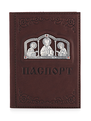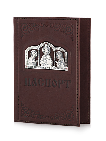Обложка для паспорта представительского класса «Защитник» выполнена вручную из телячьей кожи и украшена серебряной плакеткой высокой степени проработки.