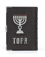 Пятикнижие украшено трехсторонним серебряным обрезом.