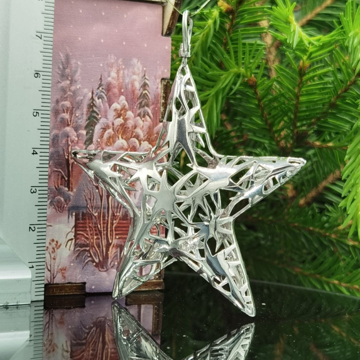 Для изготовления звезды использовано серебро 925 пробы с полированной поверхностью. Средний вес – 20 граммов (может незначительно изменяться, так как украшения изготавливаются при помощи ручного труда).