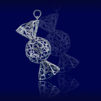 Серебряная елочная игрушка выполнена из металла высокой пробы с зеркальной полировкой. Изделие отличается изяществом и тонкостью узоров, выполненных в зимней тематике. Завитки фигурки декорированы миниатюрными вставками из нежно-голубой эмали и сверкающих кристаллов цветных камней, переливающих под неярким светом праздничной иллюминации.